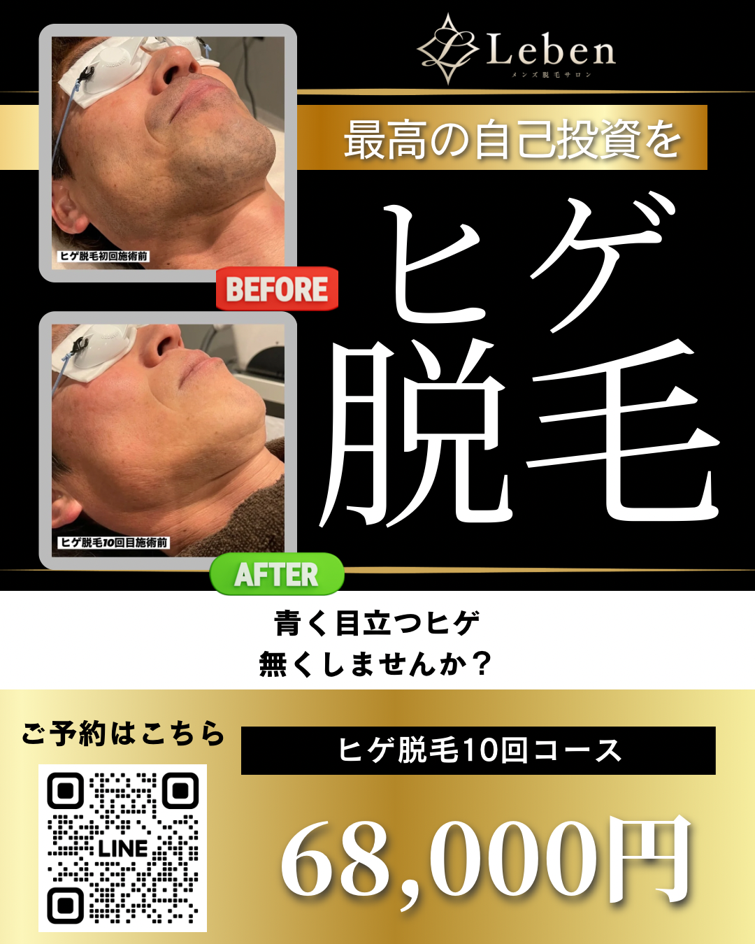 ヒゲ脱毛10回コース68,000円